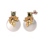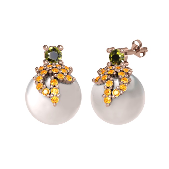 Peridot, sitrin ve inci 8 ayar rose altın küpe