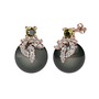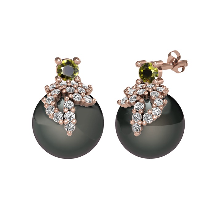 Peridot, swarovski ve siyah inci 8 ayar rose altın küpe