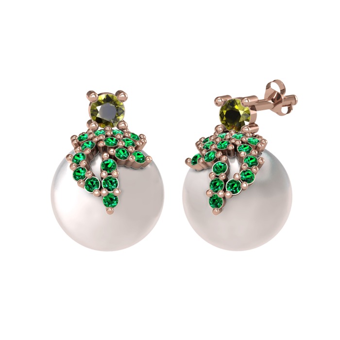 Peridot, yeşil kuvars ve inci 18 ayar rose altın küpe