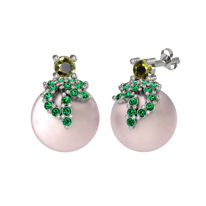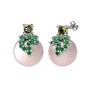 Peridot, yeşil kuvars ve pembe inci 8 ayar beyaz altın küpe