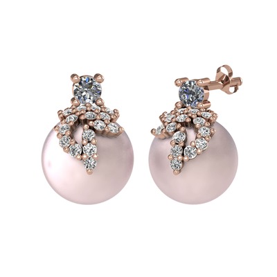 Pırlanta, beyaz zirkon ve pembe inci 8 ayar rose altın küpe (0.22 karat)