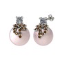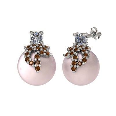 Pırlanta, dumanlı kuvars ve pembe inci 8 ayar beyaz altın küpe (0.22 karat)