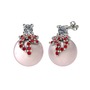 Pırlanta, garnet ve pembe inci 18 ayar beyaz altın küpe (0.22 karat)