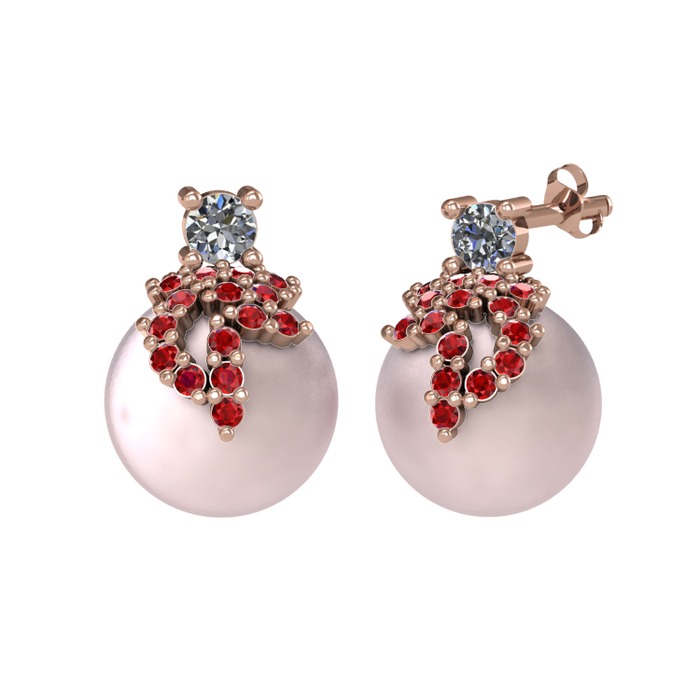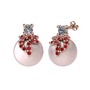 Pırlanta, garnet ve pembe inci 18 ayar rose altın küpe (0.22 karat)
