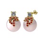 Pırlanta, garnet ve pembe inci 8 ayar altın küpe (0.22 karat)