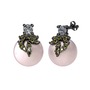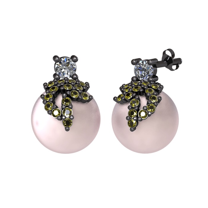 Pırlanta, peridot ve pembe inci 925 ayar siyah rodyum kaplama gümüş küpe (0.22 karat)