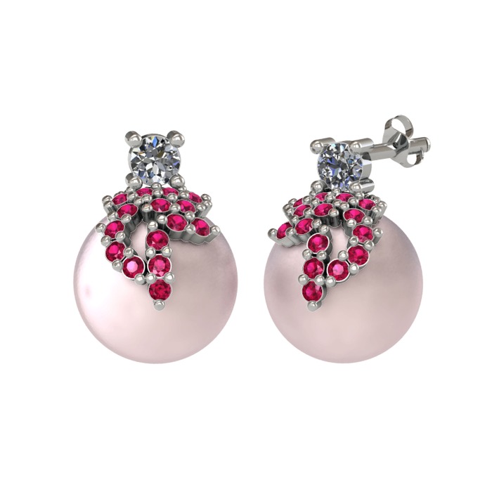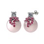 Pırlanta, rodolit garnet ve pembe inci 14 ayar beyaz altın küpe (0.22 karat)