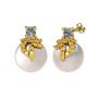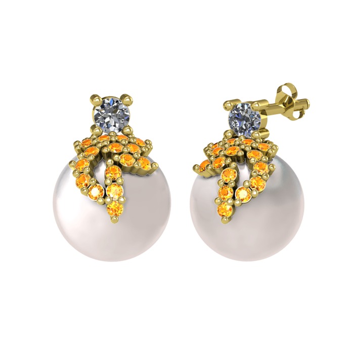 Pırlanta, sitrin ve inci 14 ayar altın küpe (0.22 karat)