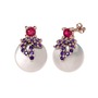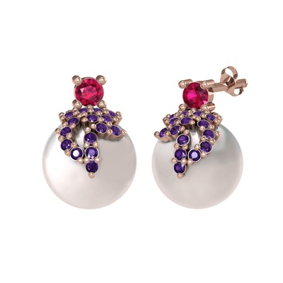 Rodolit garnet, ametist ve inci 18 ayar rose altın küpe