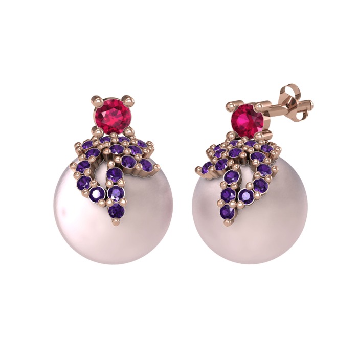 Rodolit garnet, ametist ve pembe inci 925 ayar rose altın kaplama gümüş küpe