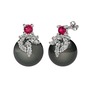 Rodolit garnet, beyaz zirkon ve siyah inci 18 ayar beyaz altın küpe