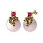 Rodolit garnet, dumanlı kuvars ve pembe inci 18 ayar altın küpe