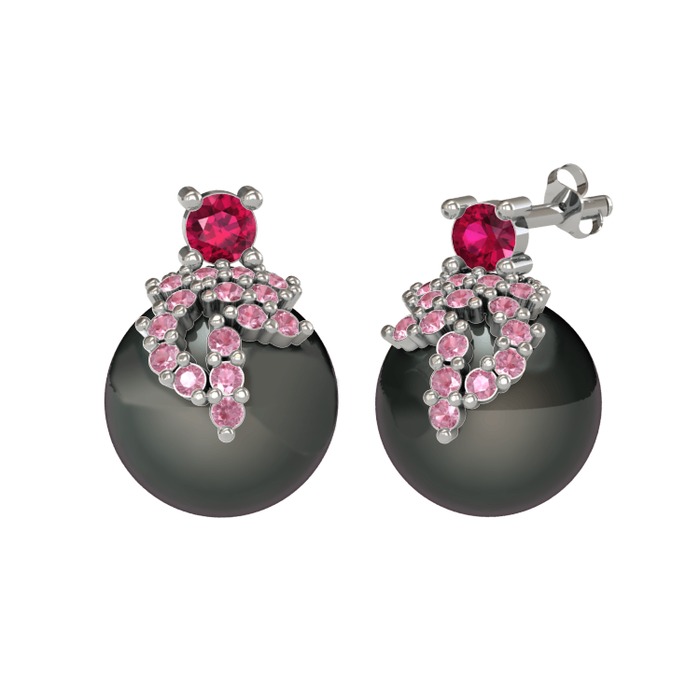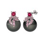 Rodolit garnet, pembe kuvars ve siyah inci 925 ayar gümüş küpe