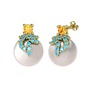Sitrin, akuamarin ve inci 8 ayar altın küpe