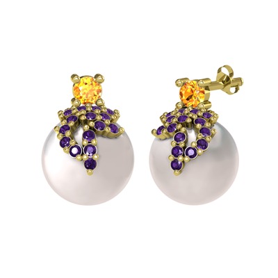 Sitrin, ametist ve inci 925 ayar altın kaplama gümüş küpe