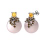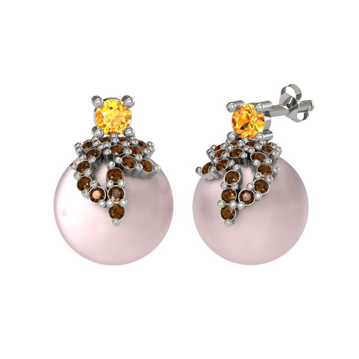 Sitrin, dumanlı kuvars ve pembe inci 8 ayar beyaz altın küpe