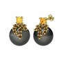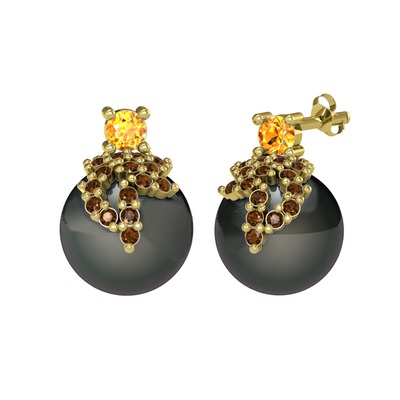 Sitrin, dumanlı kuvars ve siyah inci 8 ayar altın küpe