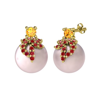 Sitrin, garnet ve pembe inci 18 ayar altın küpe