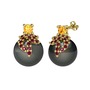 Sitrin, kök yakut ve siyah inci 14 ayar altın küpe