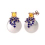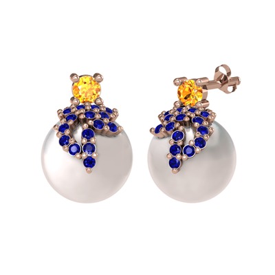 Sitrin, lab safir ve inci 14 ayar rose altın küpe