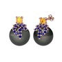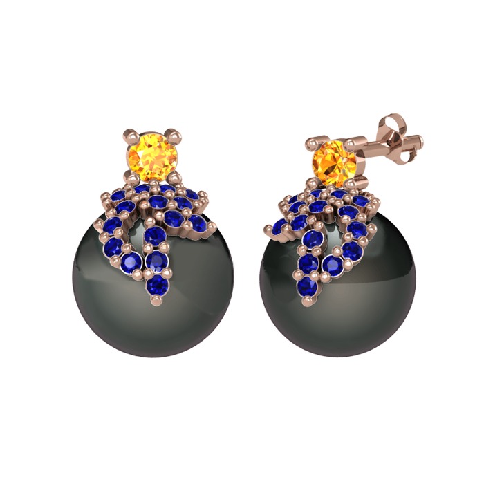Sitrin, lab safir ve siyah inci 18 ayar rose altın küpe