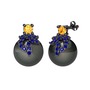 Sitrin, lab safir ve siyah inci 925 ayar siyah rodyum kaplama gümüş küpe