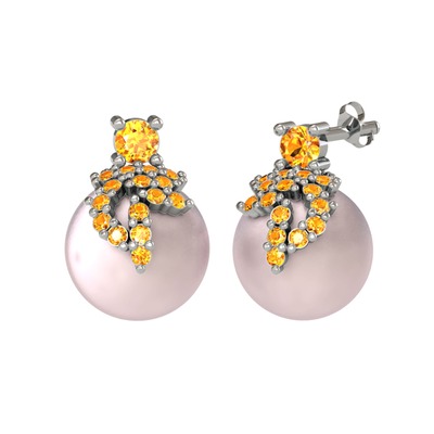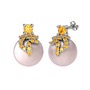 Sitrin ve pembe inci 14 ayar beyaz altın küpe