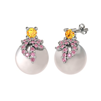Sitrin, pembe kuvars ve inci 925 ayar gümüş küpe