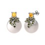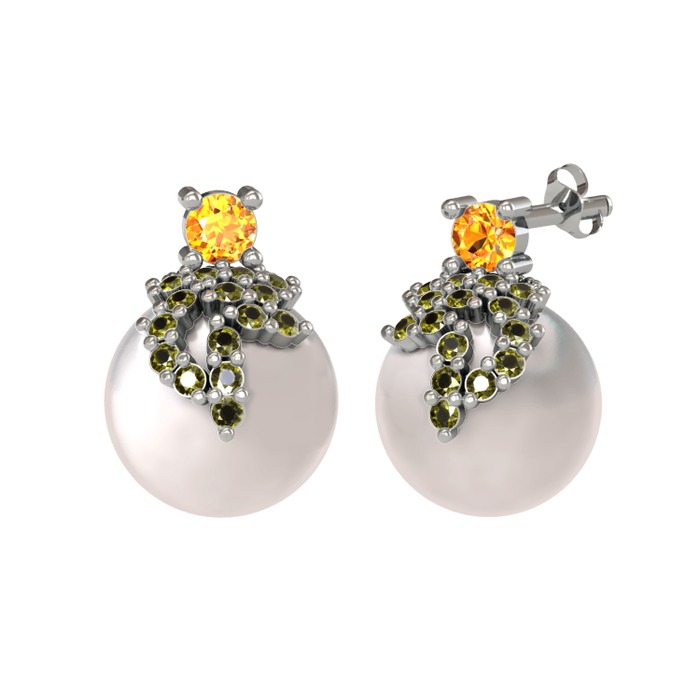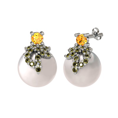 Sitrin, peridot ve inci 925 ayar gümüş küpe