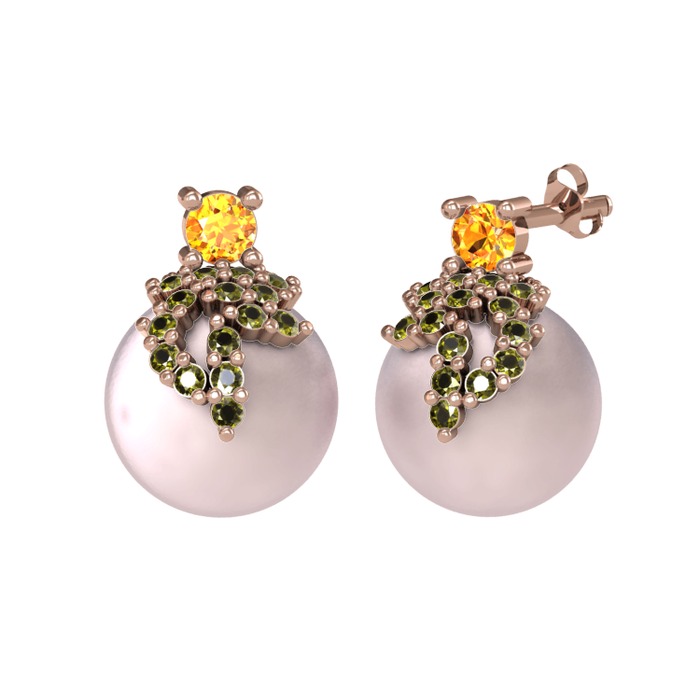 Sitrin, peridot ve pembe inci 14 ayar rose altın küpe