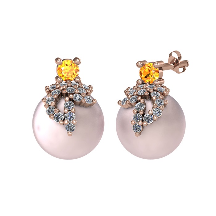 Sitrin, pırlanta ve pembe inci 8 ayar rose altın küpe (0.352 karat)