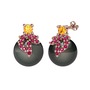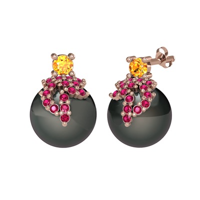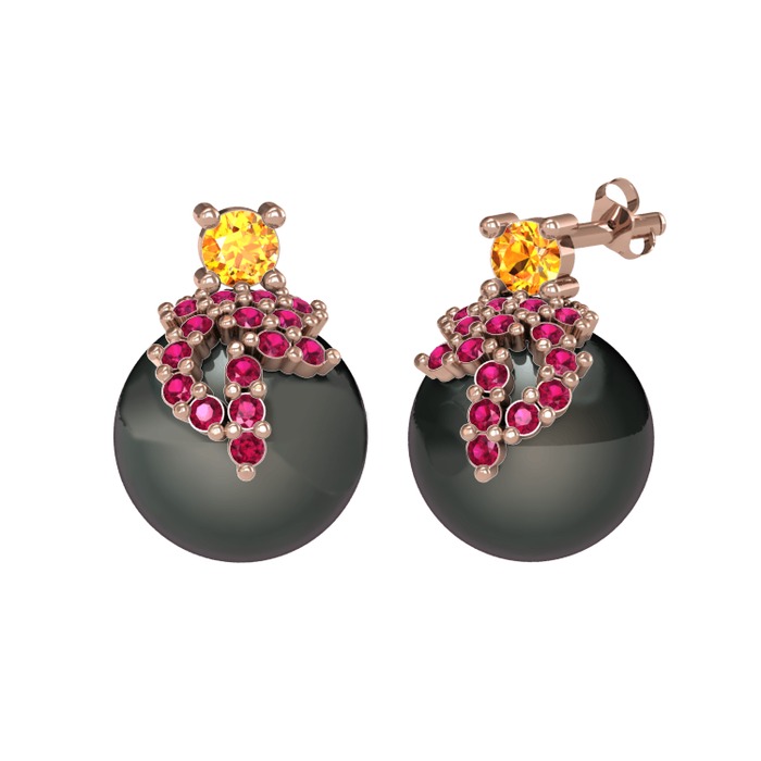 Sitrin, rodolit garnet ve siyah inci 925 ayar rose altın kaplama gümüş küpe