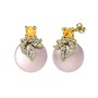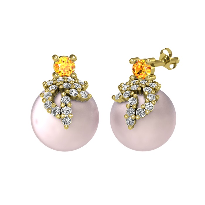 Sitrin, swarovski ve pembe inci 14 ayar altın küpe