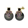 Siyah zirkon, ametist ve siyah inci 14 ayar altın küpe
