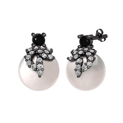 Siyah zirkon, beyaz zirkon ve inci 925 ayar siyah rodyum kaplama gümüş küpe
