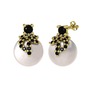 Siyah zirkon ve inci 925 ayar altın kaplama gümüş küpe