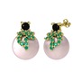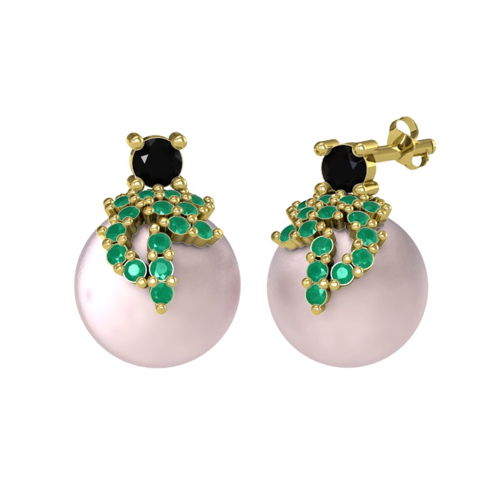 Siyah zirkon, kök zümrüt ve pembe inci 14 ayar altın küpe