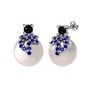 Siyah zirkon, lab safir ve inci 18 ayar beyaz altın küpe