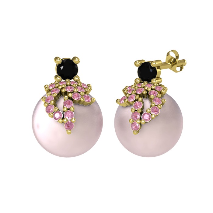 Siyah zirkon, pembe kuvars ve pembe inci 8 ayar altın küpe
