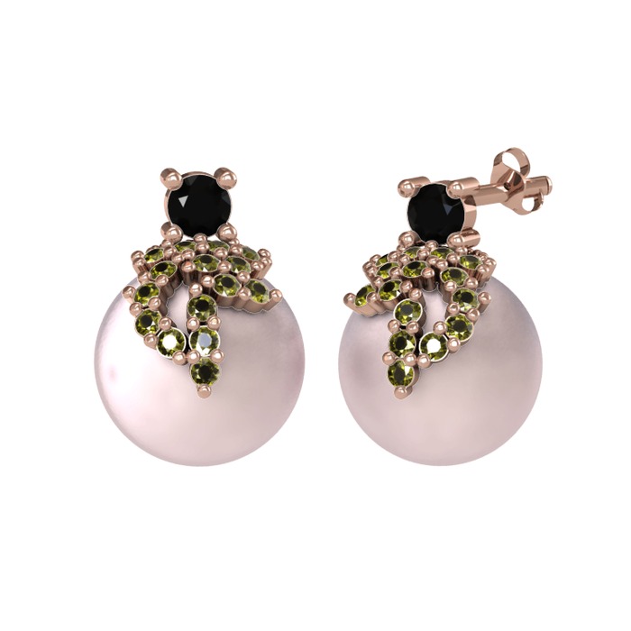 Siyah zirkon, peridot ve pembe inci 18 ayar rose altın küpe