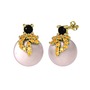 Siyah zirkon, sitrin ve pembe inci 8 ayar altın küpe