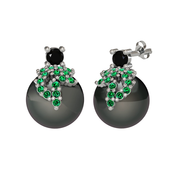 Siyah zirkon, yeşil kuvars ve siyah inci 925 ayar gümüş küpe
