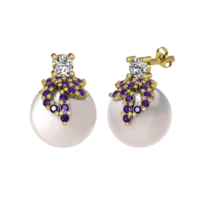 Swarovski, ametist ve inci 925 ayar altın kaplama gümüş küpe