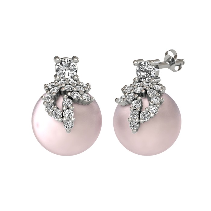 Swarovski, beyaz zirkon ve pembe inci 925 ayar gümüş küpe