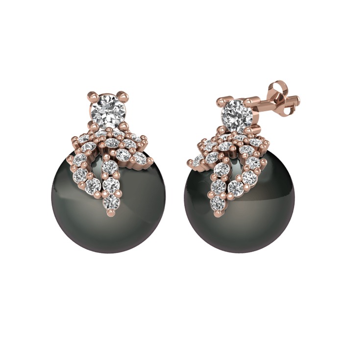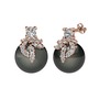 Swarovski, beyaz zirkon ve siyah inci 14 ayar rose altın küpe