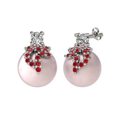 Swarovski, garnet ve pembe inci 925 ayar gümüş küpe