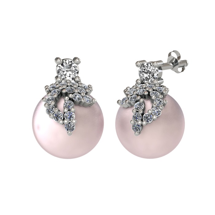 Swarovski, pırlanta ve pembe inci 925 ayar gümüş küpe (0.352 karat)