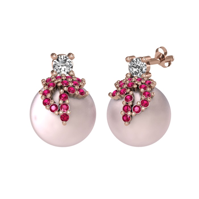 Swarovski, rodolit garnet ve pembe inci 18 ayar rose altın küpe