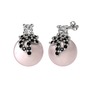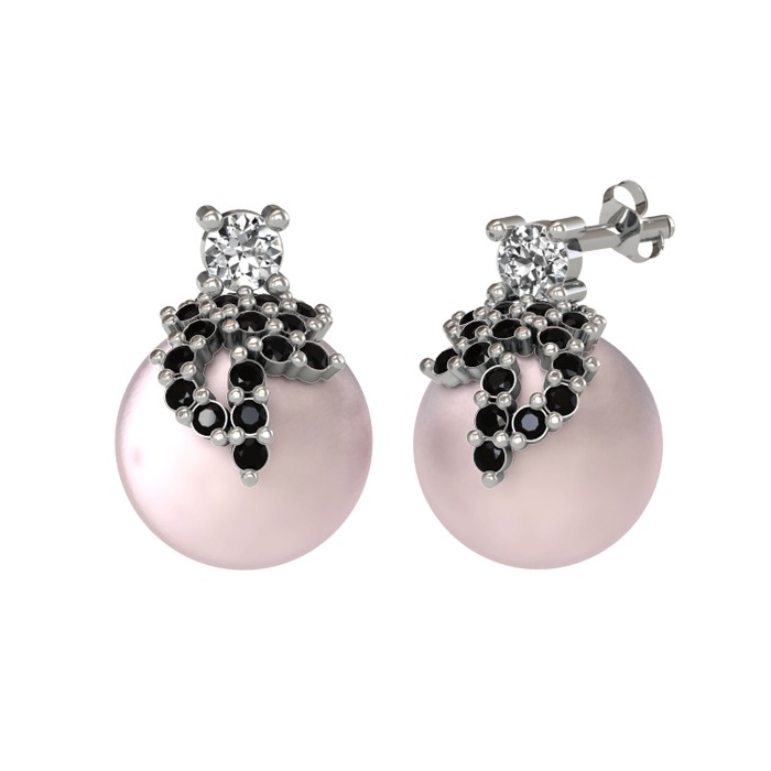 Swarovski, siyah zirkon ve pembe inci 14 ayar beyaz altın küpe