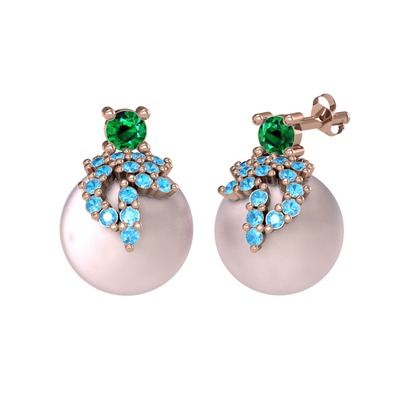 Yeşil kuvars, akuamarin ve pembe inci 14 ayar rose altın küpe